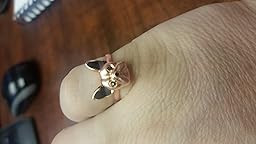 I have some real loves for this ring and one con. Let me start off by saying this ring is adorable. It’s really adorable! The metal on it is shiny. And the design is cute as you can see in my pic. It is an awesome piece to add to the collect of any dog lover! It appears to be made well and looks sturdy too. Now, for my con that I can’t get past and the reason for my 3 stars. Sizing! I love it but can’t wear it. When purchasing it does not give you an option for sizing, they just send you a size. I wear a size 7 ring and could not get it past my knuckles. It fits perfect as a pinky ring but as far as other uses for it, I can’t wear it. It also is not adjustable. I decided on three stars because it is still adorable and would fit a tween or child depending on their ring size, again I don’t know what size this ring actually is. Had it been adjustable or fit me I definitely would have given it 4 to 5 stars for overall cuteness and quality.