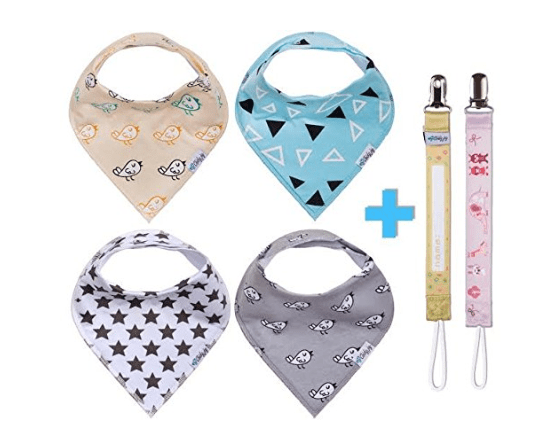This review is from: 4 Pack Stylish Baby Bandana Drool Bibs With 2 FREE Pacifier Clips, Ultra Absorbent, Ultra Soft, Organic Cotton with Snaps, The Perfect Baby Gift Set for Boys & Girls, by Chicky Joy (Baby Product)