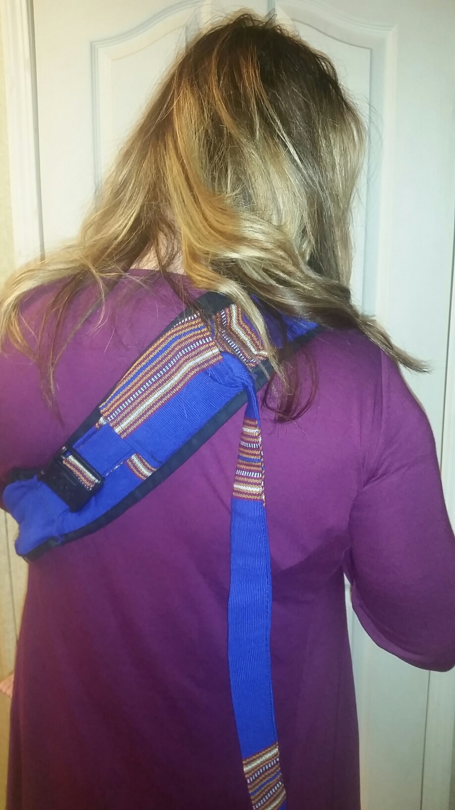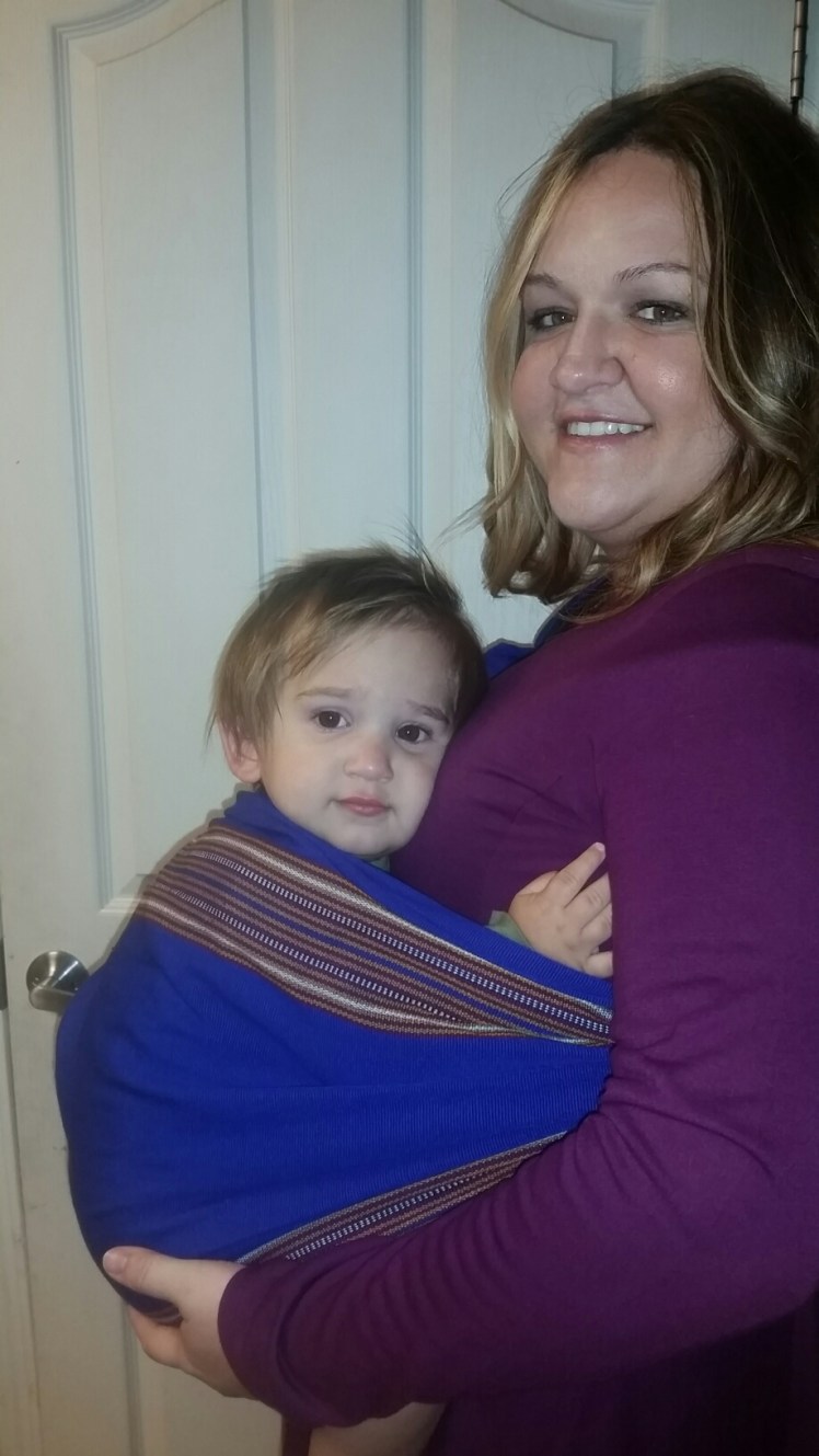 Evelin with Ikala Outfitter on Etsy sent me this beauty to test out for my comparison article. It is going to be part of my sling division. It is unlike any other that I have received in and that is what makes me appreciate it! While it is a sling, it doesn’t not have the traditional metal or aluminum rings that most slings have which can be a huge plus for the moms who do not like messing with the rings and fabric! This sling is adjusted by a buckled strap, like you would with a backpack. You can order a sling in whatever size best fits your frame so that your baby and you are comfortable. Ikala’s manual states that you can back carry, side carry and newborn carry.