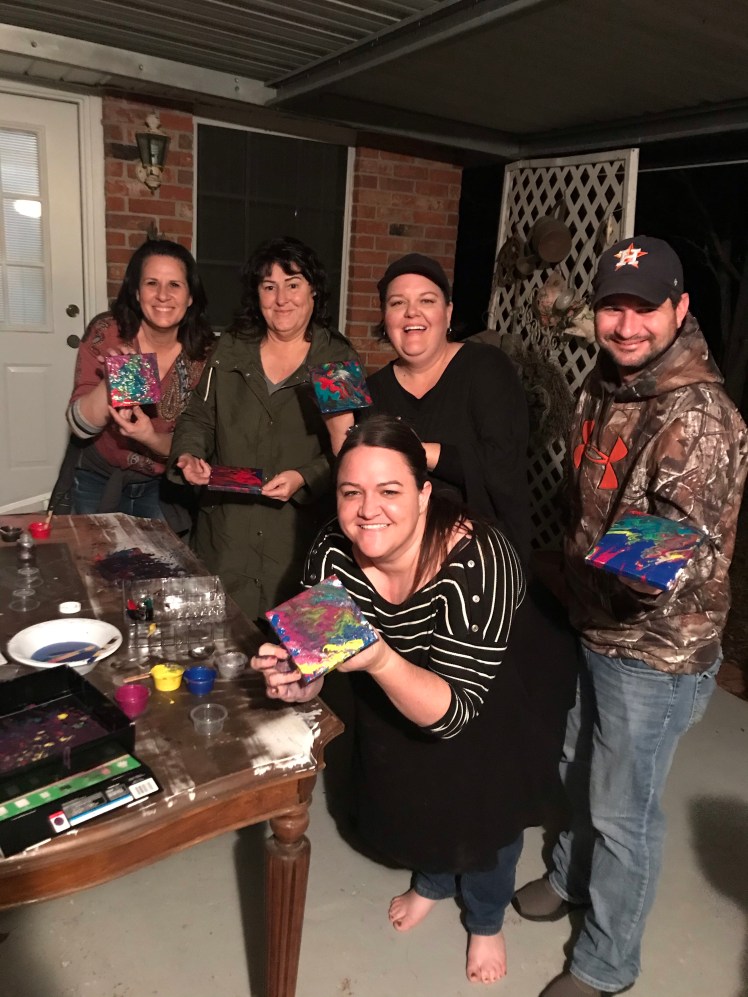 The paint-pour box was the funnest in everyone’s opinion. You have the freedom to mix your paints and see where it takes you. Literally you just pour the paint into cups and place it on your canvas and let it run until you get the desired look you want! These little canvases turn into chic works of art. There are 3 canvases to a box.